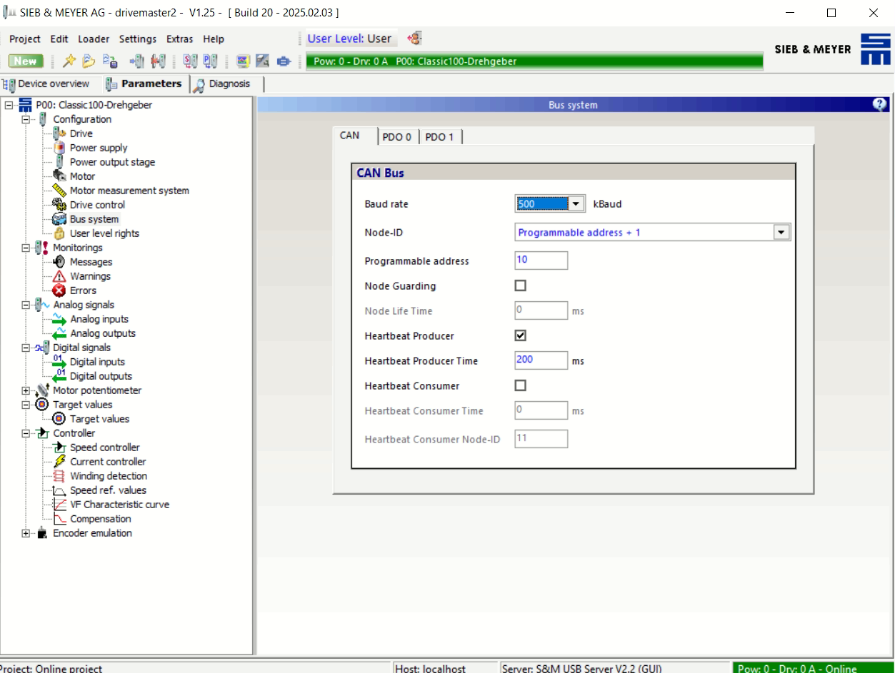 - but some parameters like baudrate are set to 500 kbit/s instead of 1Mbit/s
