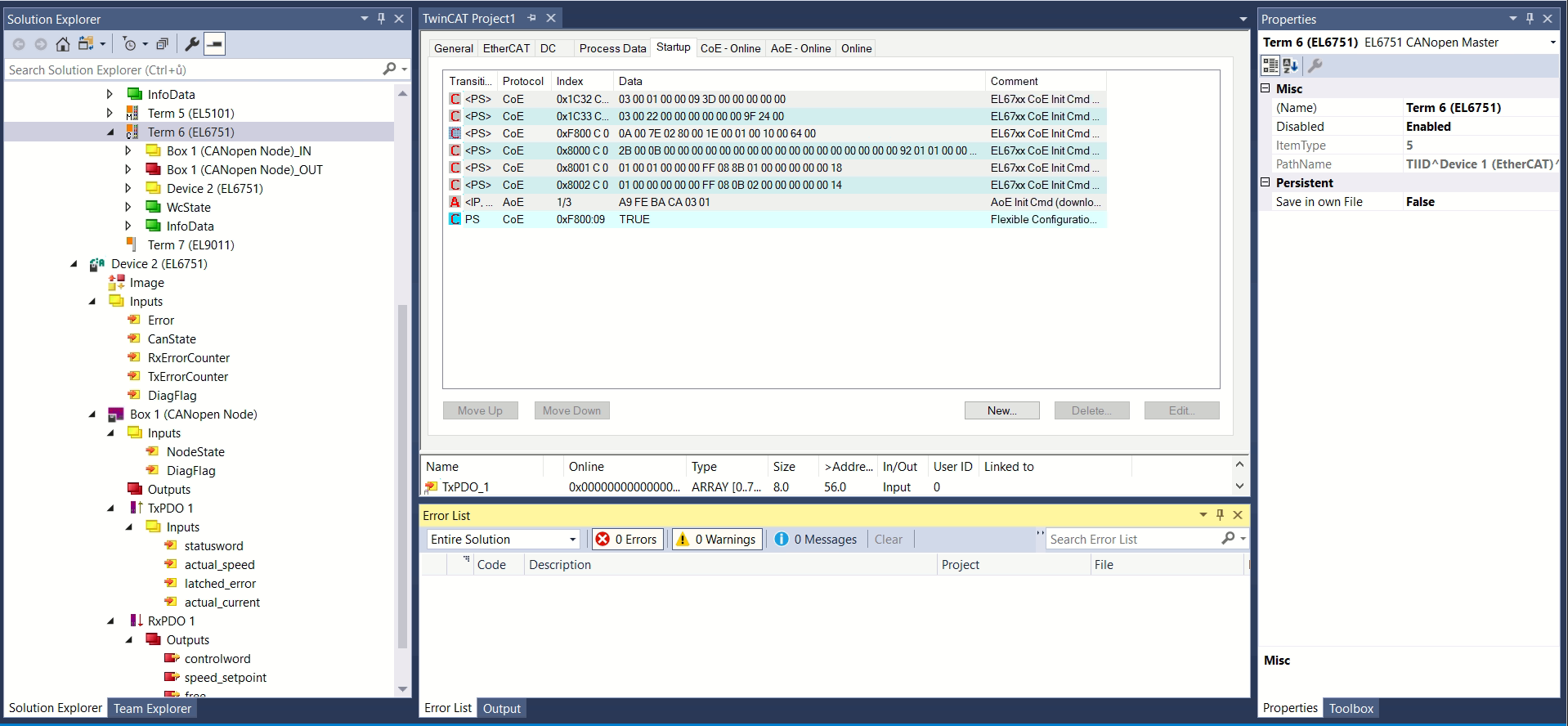 After a long break, I am trying to get the EL6751 up and running. However, I am already failing to get the terminal into the Run status without a bus error.