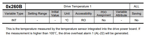 The drive manual doesn't discuss SDOs, or whether some data index is a PDO or SDO. I would hope a temperature sensor would be continuously readable, which would require it to be a PDO.