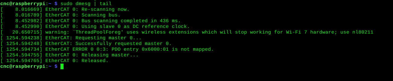 Can you also post the output from the command "sudo dmesg | tail -30" for error messages from Ethercat master.