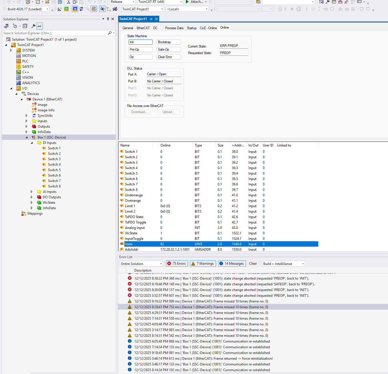 What worries me is that I can still see the original configuration with available switches in Twincat
