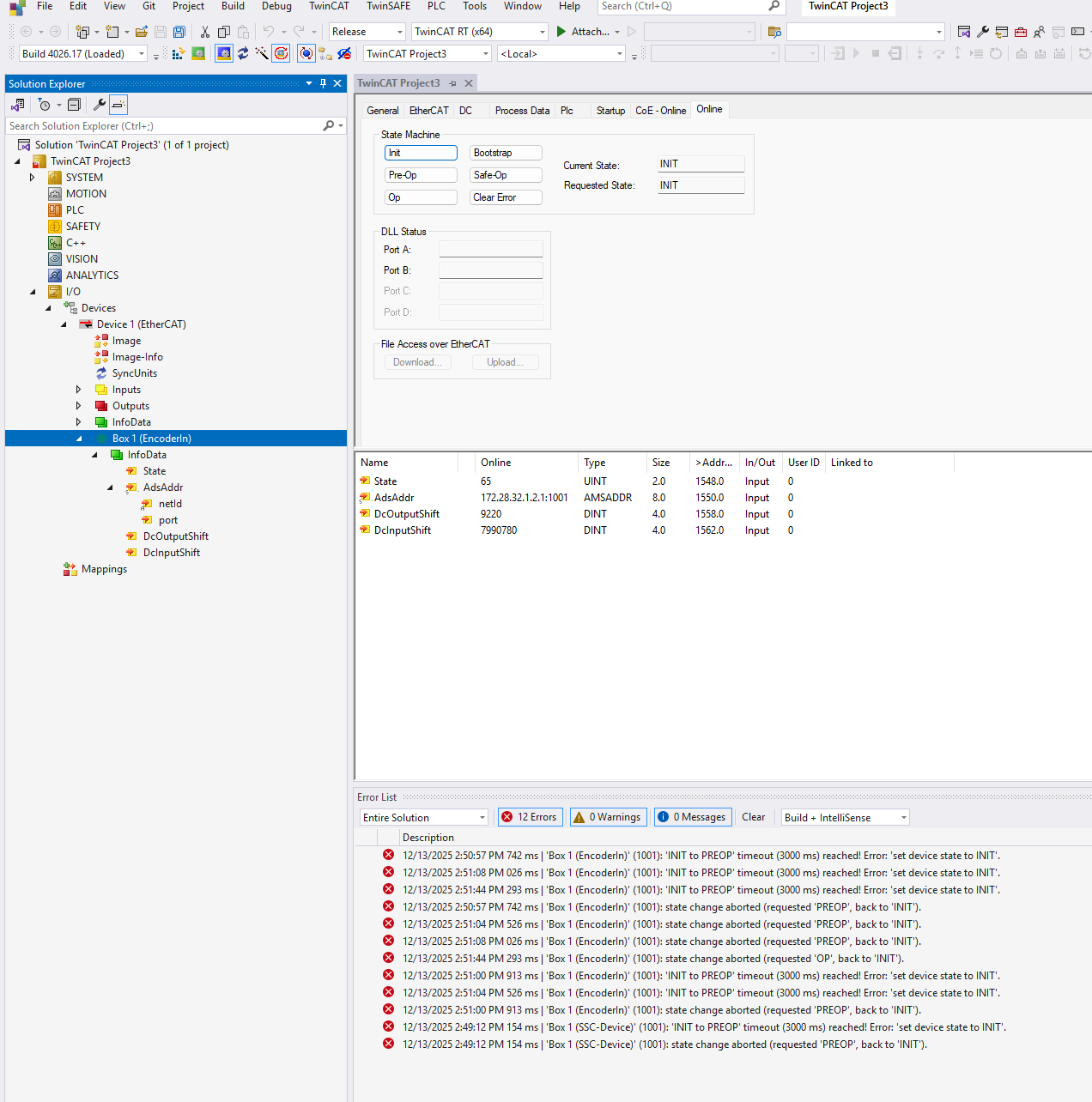 restart twincat to have it read in new config, scan for devices,