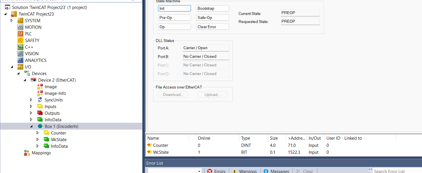 Also quit Twincat and start it.