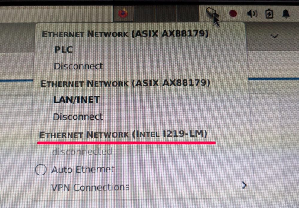 And also, in Network Connection (in "TASKBAR on the top of Desktop") I could see a NIC Interface that I'm using for "EtherCAT".( see attachment jpeg image)