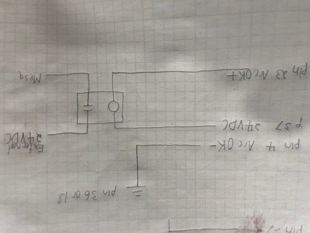Now I can't get my arc ok signal. I followed the example wiring in the manual. I connected ark ok+ pin 23 to the relay. Then 24vdc+ pin 37 to the relay. Then ark ok- pin 4 to power ground pin 36.