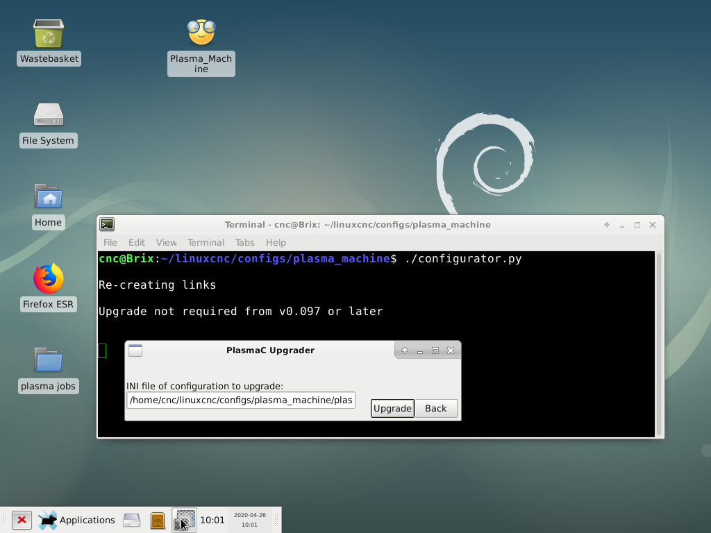 I am having trouble updating plasmac. It is saying update not required from version 0.097 or later. I have attached my configs. it might need changing the extension to 7z