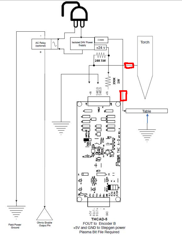 It does make me wonder though, looking at this, that if one forgot the ground clamp on the material, if the path could be completed through the -24V to ground? I know I've forgotten to hook up the workpiece clamp before (facepalm), and I've not yet torched any wires.