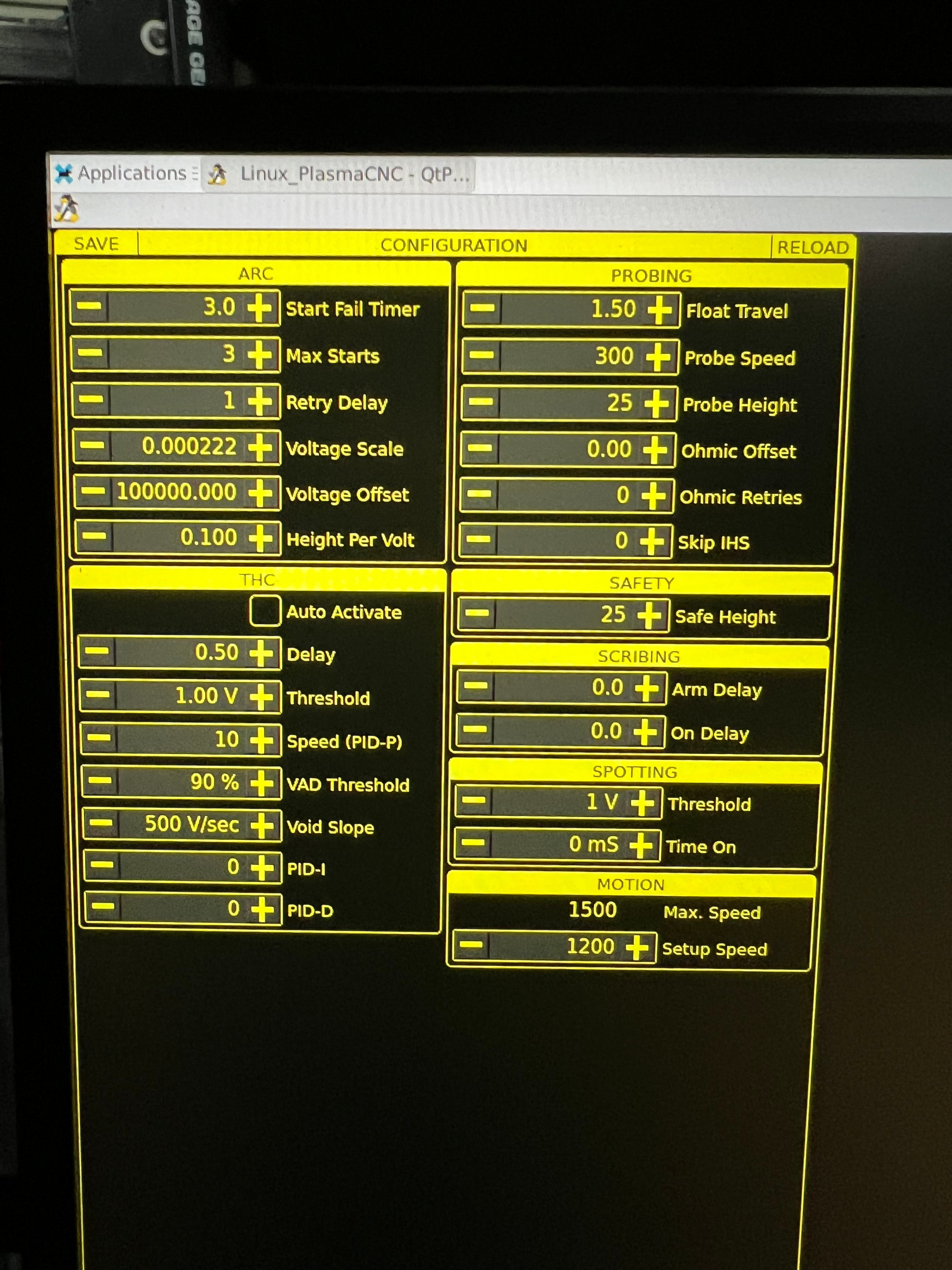 Separately, I was concerned about the configuration settings: mostly about the arc voltage etc... I read somewhere about a need to set the config of the THCAD2 into the settings of the Software based on a frequency... Cant remember where I saw that but the config setting are my main concern at the moment. The other thickness settings are in line with the cut charts for the machine.