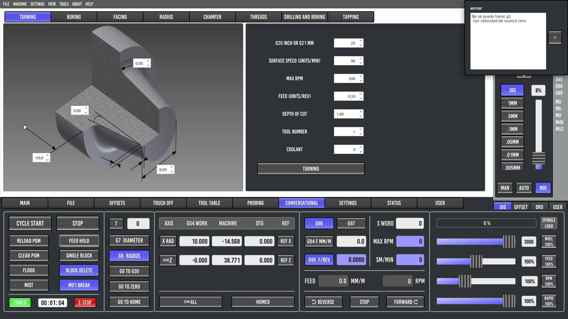 I’ve just updated, and now the screen displays correctly. The arrows seem to respond properly, but none of the conversational macros work—or maybe I’m doing something wrong when entering the values in the fields, although it doesn’t work in simulation either. I’m attaching a screenshot.The default RPM the spindle should run at when I press the Forward button still isn’t working.