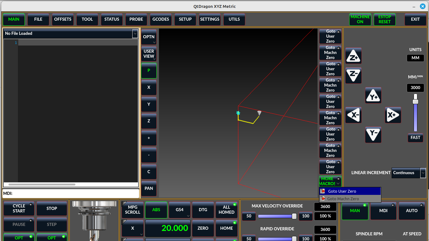 1. If I press a macro button a second time that doesn't do anything because it's already executed, e.g., "Goto Machin Zero," the LED doesn't go out; it keeps blinking. It blinks until another macro does something.